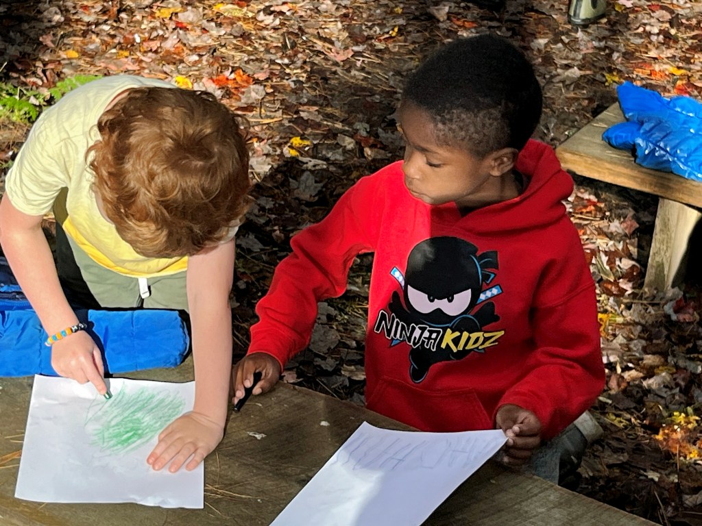 On October 18, 34 kindergarten students went to the Krusch Preserve for a morning of forest wonder. We were in 2 groups- an exploration group and an outdoor classroom group which did leaf tracings, had a snack and story time. Then the groups switched.