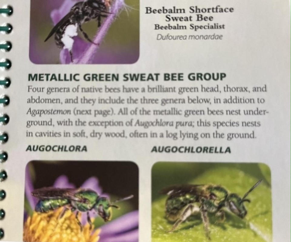- Metallic green sweat bee group – Dufourea . Long antennae, slender body