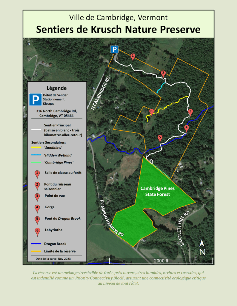 The Peter A. Krusch Nature Preserve – 316 North Cambridge Road, Cambridge, VT 05444