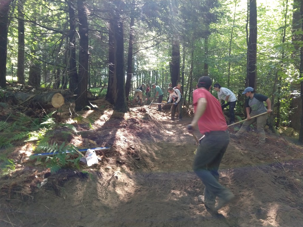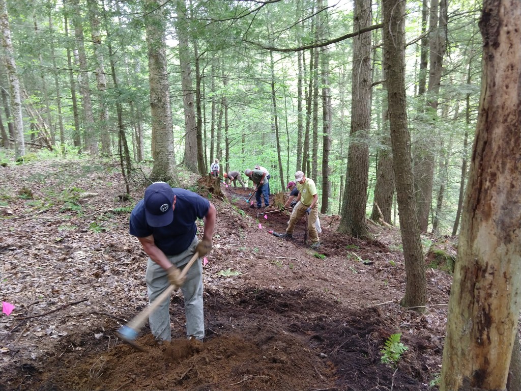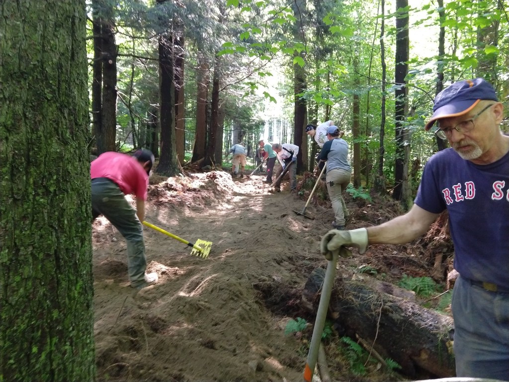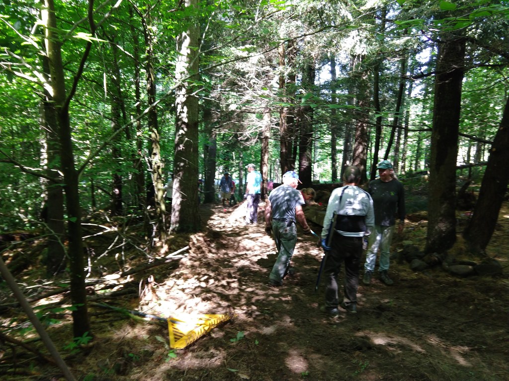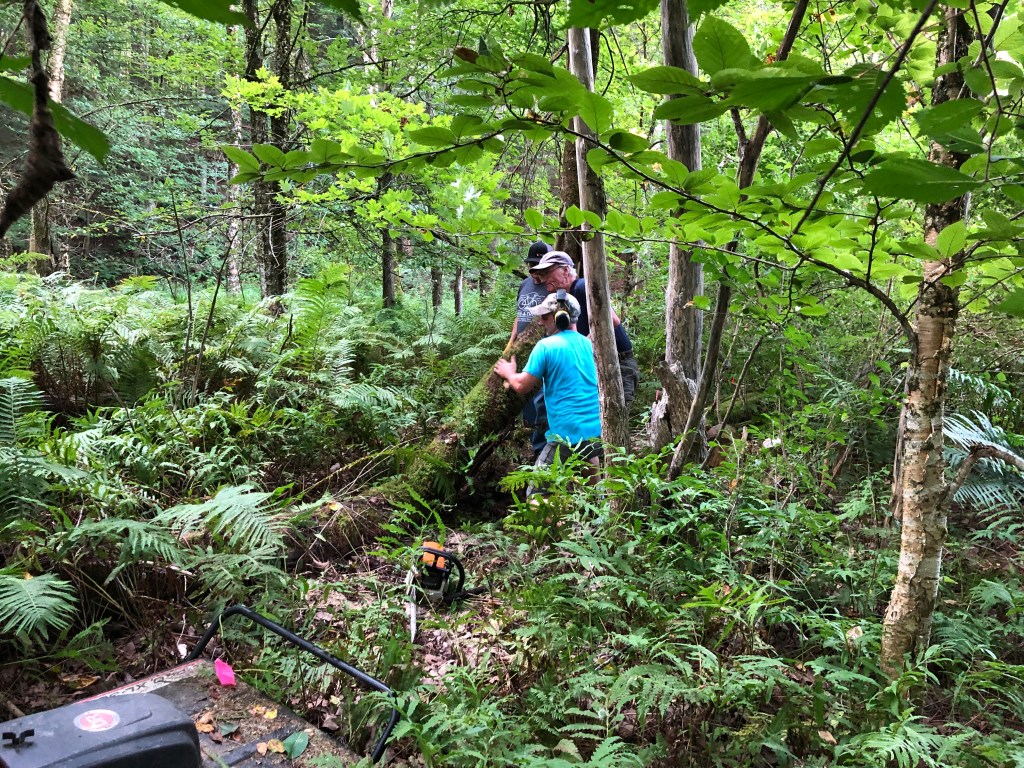 After an inspection by The Bovine Welcome Committee the route through the ferns was brush-hogged and cleared of fallen trees. The old board walk was lifted and hauled out. Greg Fatigate then went to work installing new cedar bog bridging.