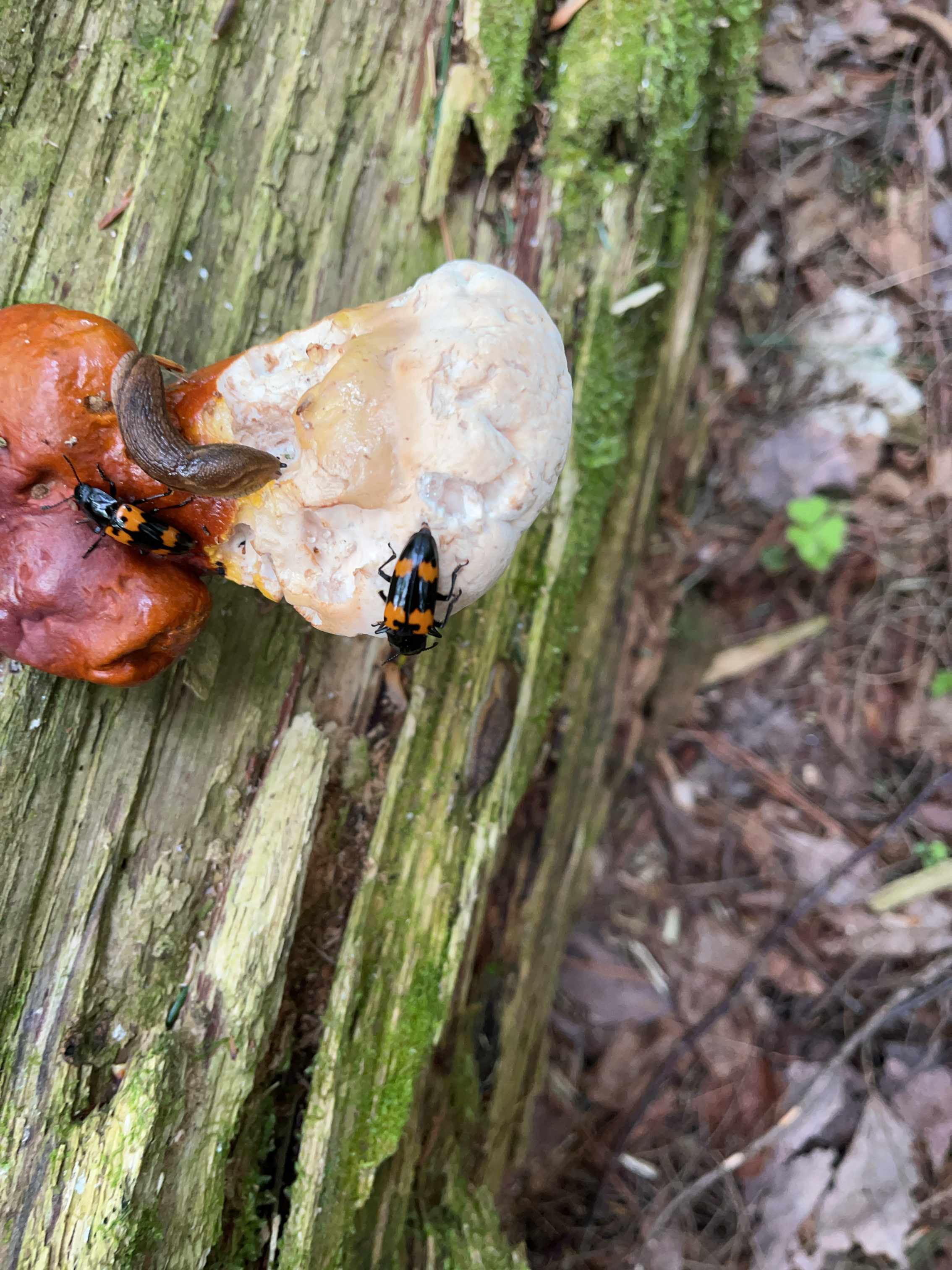 Seen for the first time at the preserve, the Heroic Pleasing Fungus Beetle on a different stage of Hemlock Varnish Shelf fungus
